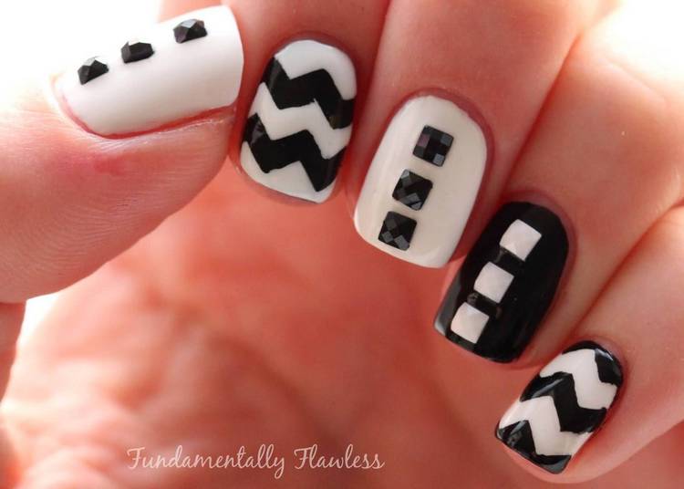 Только глядя на обилие вариантов черно-белого маникюра, собранных в этой статье, понимаешь, что невозможно ошибиться с выбором этих классических цветов.