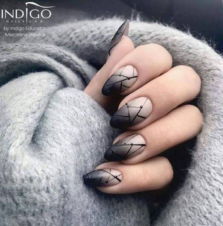 А во-вторых, на чёрной основе вы также можете интересно обыграть длину ногтевой пластины.
