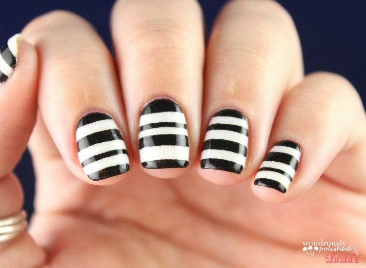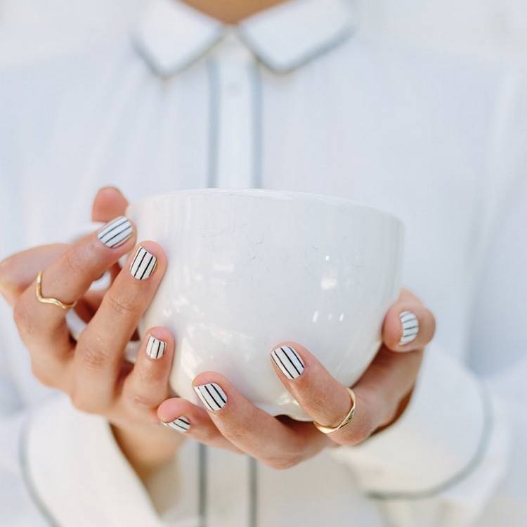 Самый простой способ получить чёткие, прямые линии в домашних условиях — использовать специальную ленту и чуточку терпения. Следует отметить преимущество полосатого маникюра за его способность вуалировать короткую длину ногтей. Если у вас короткие ногти, то именно полоски на ногтях будут переключать на себя внимание от длины.
