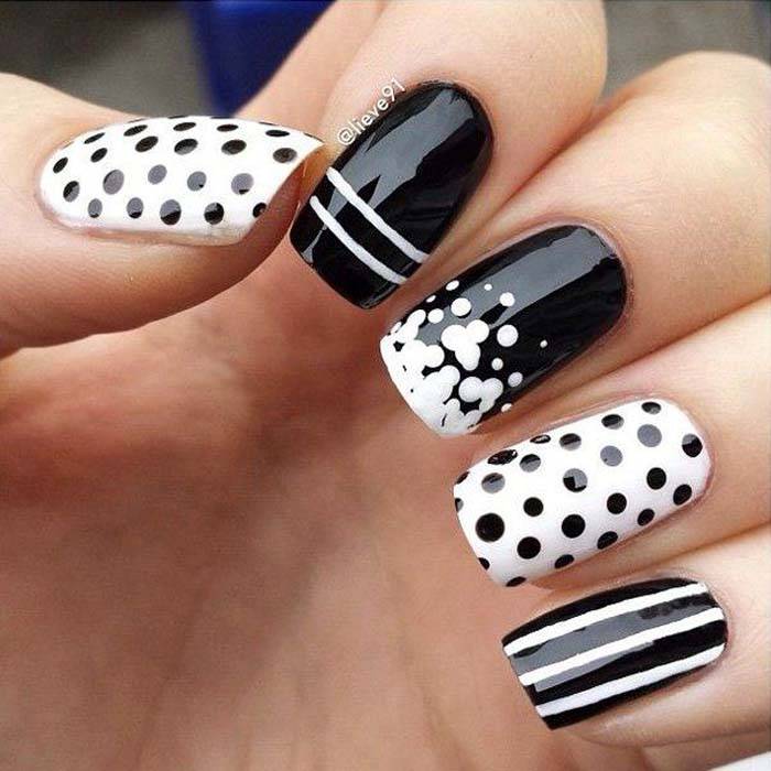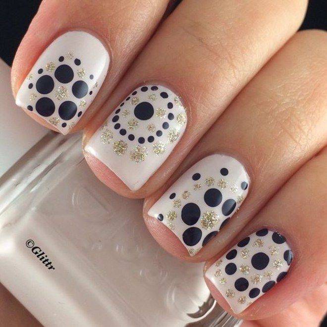 Популярный горошек покорил не одно сердце девушек. Это вполне обоснованно, ведь каждая из нас в душе всегда остаётся задорной девчонкой. Как раз причудливый маникюр в горошек говорит о вашем стиле и настроении. Казалось бы, строгость и определённость чёрного и белого невозможно исключить, однако, именно горошки в черно-белом маникюре помогут вам создать правильную атмосферу лёгкости и непринуждённости. Смело пробуйте наши крутые идеи маникюра.