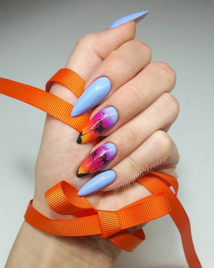Гарний літній манікюр з малюнками на нігтях - це чудовий варіант заявити про свою індивідуальність. Ти можеш підібрати будь-яке зображення, яке асоціюється у тебе зі спекотною порою року і насолоджуватися малюнками на своїх нігтях. Крім квіткової, морської, фруктової тематики, користуються незмінною популярністю яскраві малюнки на нігтях, тропічні мотиви, етніка.