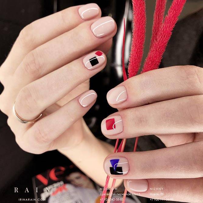 Якщо ти працюєш в офісі, то і весняний манікюр і літній дизайн нігтів мають бути стриманими і непомітними. Влітку, для втілення в життя подібної задумки, найкраще підходить нюдовий манікюр у ніжних пастельних тонах: пудровий, бежевий, білий, лавандовий, персиковий, ніжно-бірюзовий або блакитний. Якщо дрес-код на роботі не надто суворий, то такий гарний літній манікюр можна сміливо доповнити невеликим малюнком на одному або двох нігтях.